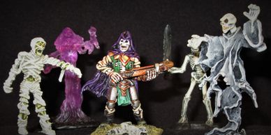 There are a wide variety of undead types reported by Dead Land explorers and adventurers. Skeletal warriors, knights, even apocalypse lords, can appear at any moment, day or night, suddenly crawling up out of the dirt without warning. The equipment they carry is rusted and worthless, but works like the real thing. During the night hours, shadow creatures, spectres, and spectral warriors are equally common almost anywhere in the Dead Lands. Less common, but more likely found in the many ruins areas, are stronger undead like wraiths and revenants. These creatures tend to be territorial in nature, and often have lesser undead in their command.