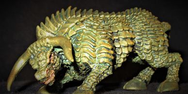 If bugs and fell plants aren't enough, other creatures prowl the Marsh. It may be the easiest place to find the Blackmoor crocodile, whose rule as top natural predator is contested by the swamp python. Swamp Trolls generally hunt on land, but can stay underwater for considerable time in order to attack by ambush. Spiny Wyverns nest on rocky high points in mated pairs; one guards the nest while the other hunts. A unique creature, tentatively called a "swamp dog" and described as "a rabid dog crossed with a raging boar" has been identified, it appears to be a solo hunter.