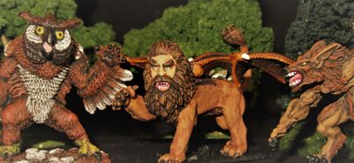Yet even weirder and more fantastical creatures can be found in the Dreadwood as well, almost a who’s who list of legendary creatures. Plague rats, hell hounds, and goblin wolves run in packs. Ankheg can attack the unwary from below, griffon and manticores can attack from above in the rare meadows and open spaces. Harpies, usually nesting in large groups high in the tall trees, will harass and pester travelers for miles. Worthy of special note, the Dreadwood is also the only local location where the rare giant owlbear is found.