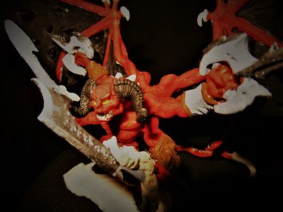 Though a bit more intelligent than their lesser kin, Glabrezu demons do not specialize in deep thought. They are the archetype of senseless destruction and unlimited violence, it is their only purpose and their only function. More perhaps than any other demon, they delight in random death and physical destruction of anything and (if possible) everything around themselves. Glabrezu are, unsurprisingly, notoriously difficult to control even as demons go, or perhaps the easiest to lose control over once they begin a rampage. It is not completely uncommon for these creatures to even slay the magician that summoned them, not intentionally, but simply through the demon's uncontrollable violence.