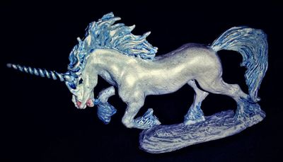 Unicorns in the wild will usually avoid confrontations, but are capable of fiercely defending themselves if necessary. They can strike with their forehooves like any horse, and their horn can damage creatures that require magic weapons to be hit. Unicorn are almost impossible to surprise in the wild, and their ability to move quietly makes them likely to surprise opponents. They cannot be charmed, or held by magic, and are not affected by poisons, gas effects, or death magic. Once per day, a unicorn can dimension door to a spot it can see within roughly 100 yards.