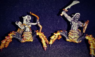 Driders are bizarre creatures with the body of a spider merged with the torso of a Drow Elf. These evil creatures are believed to be created by the Demon Goddess Lolth from supplicants who have failed tests of worthiness, or similarly brought upon themselves the displeasure of the Demon. As failures of their deity’s tests, drider are spurned by Drow society, and killed by the dark elves when encountered. This drives driders to an essentially solitary existence, at least as regards social interaction. Driders will often have spiders, scorpions, and other verminous creatures sharing their otherwise solitary lairs.